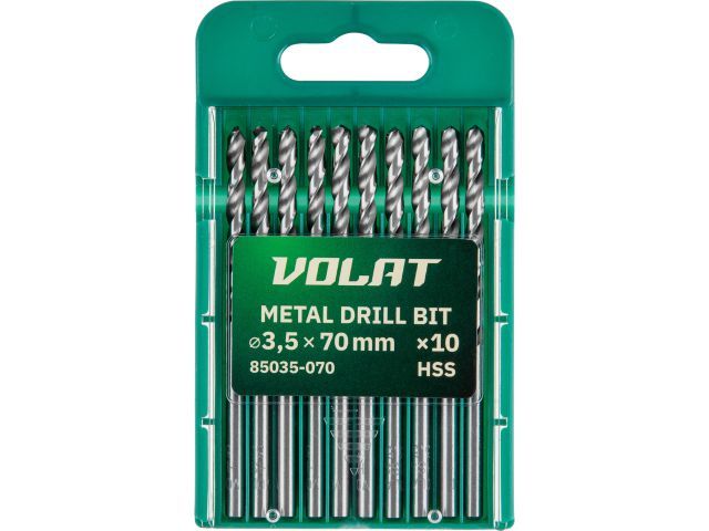 Сверло по металлу ц/х 3.5х39х70 мм HSS, комплект из 10-ти шт ВОЛАТ