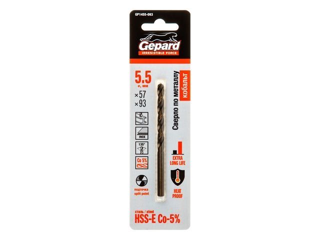 Сверло по металлу ц/х 5.5х57х93 мм HSS-Co GEPARD(кобальт 5%)