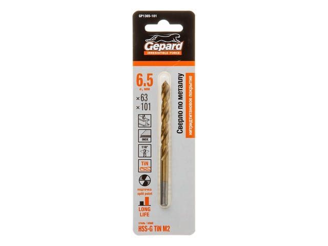 Сверло по металлу ц/х 6.5х63х101 мм HSS TIN GEPARD(нитридтитановое покрытие)