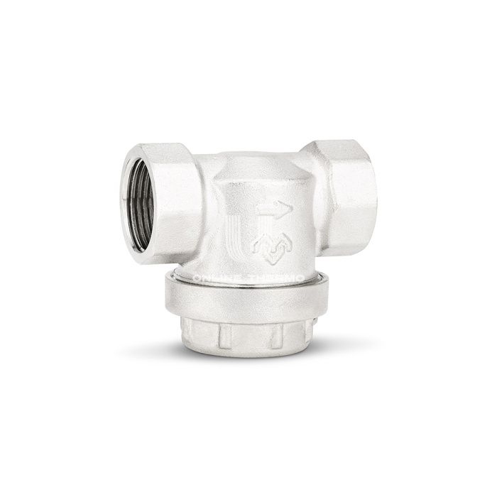 Латунные Т-образные (прямые) фильтры грубой очистки Varmega считаются механическими, их задачей является очистка воды от механических примесей (грязь, ил, песок, ржавчина или шлам). Данные фильтры используются повсеместно, их рекомендовано устанавливать на подающем трубопроводе в дом или квартиру. Они защищают водосчетчики и бытовую технику (стиральные и посудомоечные машины), а также повышают эффективность фильтров тонкой очистки. Степень очистки фильтра зависит от размера сетки фильтрующего элемента. Чем больше размер ячеек, тем ниже степень очистки. Чем меньше размер сетки, тем больше гидравлическое сопротивление будет создавать фильтр. Часто проточный фильтр грубой очистки (ФГО) также называют предфильтром. Считается, что необходимо устанавливать фильтр грубой очистки воды перед счетчиком, если такой имеется, но после запорной арматуры. Особенностью прямых Т-образных фильтров является то, что поток жидкости, попадая в фильтрующий элемент, поворачивает на 90°и создает турбулентное вращение потока, которое омывает сетку. Благодаря этому достигается наиболее эффективная очистка, которая не позволяет нарастать на сетке коллоидным и волокнистым частицам. Латунные Т-образные (прямые) фильтры грубой очистки Varmega поставляются с сеткой с размерами ячеек 500 мкм, фильтры идут в двух исполнениях: внутренняя/внутренняя резьба и внутренняя/наружная резьба. Т-образные (прямые) фильтры необходимо регулярно обслуживать. Для этого необходимо открутить заглушку и извлечь фильтрующий элемент для очистки и промывки. Гамма: от ½”, ¾ ” Внутренняя резьба: ISO228 (эквивалентно DIN259 и BS2779) Предназначение: фильтр применяется для очистки потока от механических примесей в системах водоснабжения, системах отопления, системах кондиционирования, системах сжатого воздуха, системах промышленных трубопроводов с жидкостями, неагрессивными для материалов фильтра. Фильтр можно применять вместо самопромывных фильтров, если нет необходимости в частой промывкe. Диапазон рабочих температур: от -20°С до +110°С Рабочее давление: PN16 Фильтрующая способность: 500 мкм (½”, ¾ ”) Направление потока: в одном направлении Эксплуатация: фильтр должен монтироваться на трубопроводе колбой вниз