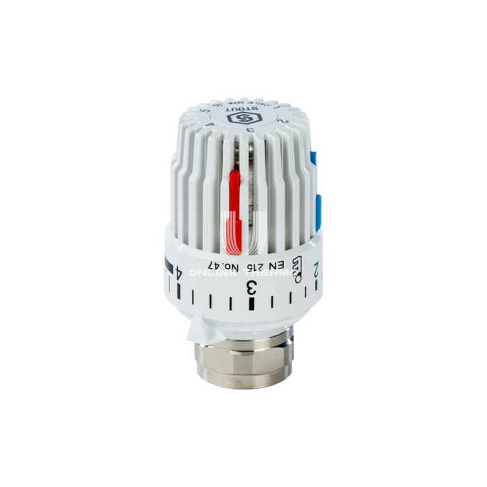 Термостатические элементы (термоголовки) Stout изготавливаются в Италии и являются основной деталью терморегулирования, что включает в себя температурный датчик, контроллер с датчиком температуры, привод исполнительного механизма (клапана). Установка на терморегуляторе осуществляется при помощи соединения M30х1.5. Термоголовка может настраиваться потребителем на поддержание любой желаемой температуры воздуха в отапливаемом помещении. Термоэлементы предлагаются с газонаполненным или жидкостным сильфоном.