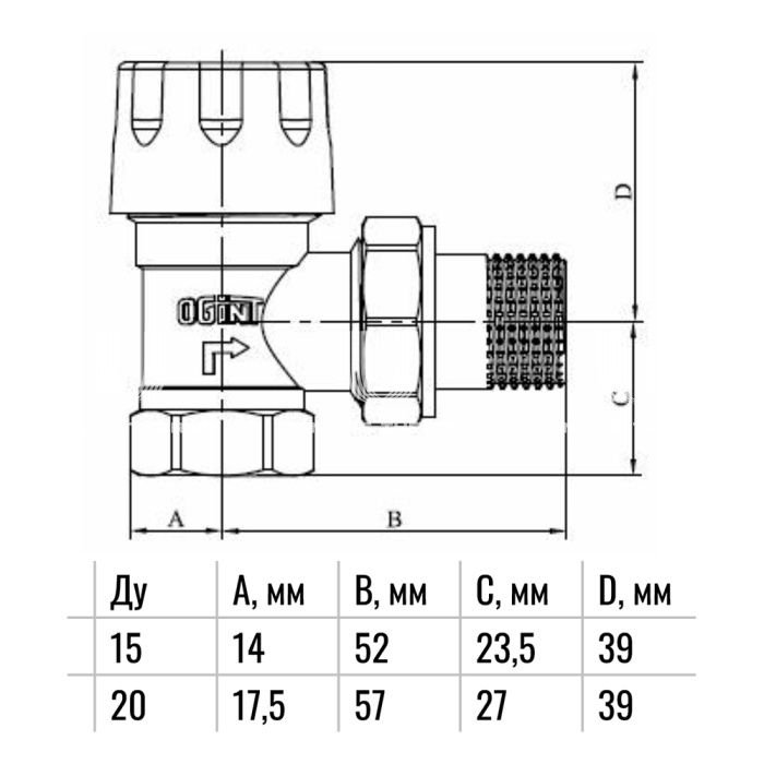 Термостатический клапан (терморегулятор) Ogint 1/2" ВР, без преднастройки