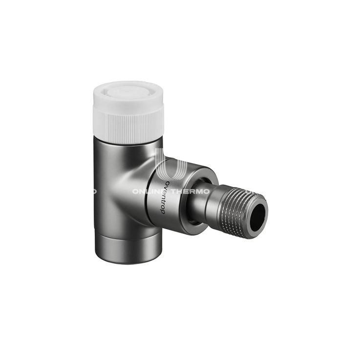 Термостатический клапан (терморегулятор) Oventrop 1163082, DN15, 1/2" ВР-НР, серия E, угловой, матовая сталь, с преднастройкой