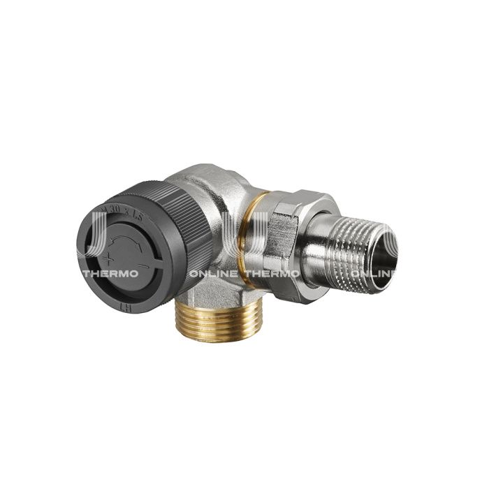 Термостатический клапан (терморегулятор) Oventrop 1181396, DN15, 1/2"х3/4"EK НР-НР, серия A, трехосевой левый, с подключением ЕК, без преднастройки