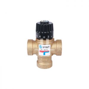 Термостатические смесительные клапаны Stout – регуляторы температуры прямого действия, работающие без использования дополнительной энергии. Предназначены для контроля и поддержания заданной температуры в системах горячего водоснабжения, а также отопления с постоянной температурой теплоносителя, например, типа «теплый пол». Смесительный термостатический клапан имеет два входных штуцера для подвода смешиваемых сред и один выходной. В клапан встроен перенастраиваемый термостатический элемент, поддерживающий в зависимости от модификации клапана температуру теплоносителя в диапазонах 20 – 43 °С, 35 – 60 °С или 30 – 65 °С.