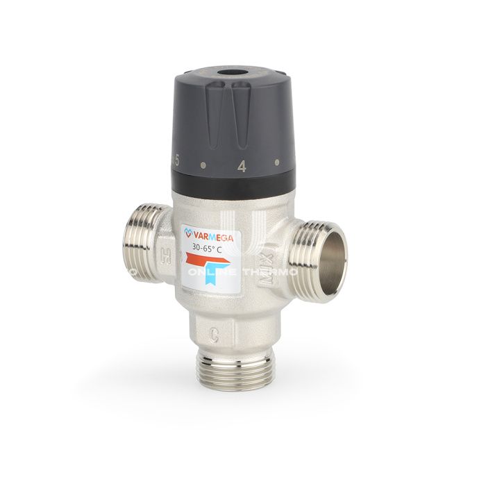 Термостатический смесительный клапан Varmega VM17203 НР 1", Kvs 1.6, PN 10, смешение в бок, 30-65°С