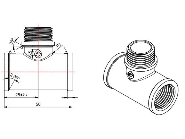 Тройник 1/2' вн.-нар.-вн., AV Engineering (инд. упак.)(Латунь, макс. 16 бар, макс. 110 °С)