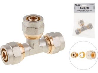 Тройник 16(2.0) для труб PEX, AV Engineering (инд. упак.)(для металлопластиковых и PEX труб)