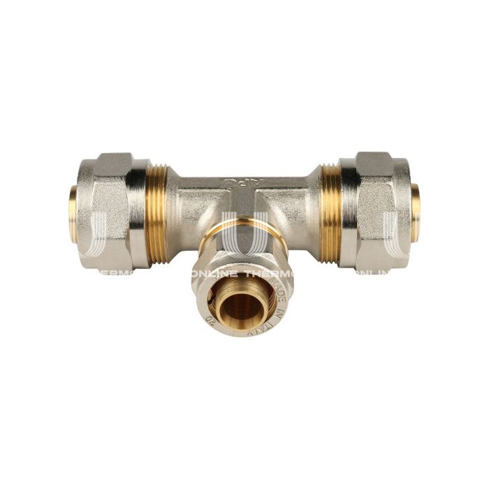 Тройник переходной Stout SFS-0010-262026, 26х20х26 мм, никелированный, компрессионный
