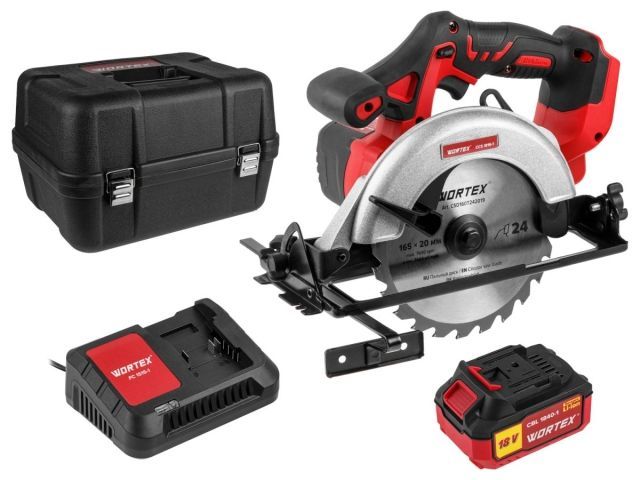 Циркулярная пила WORTEX CCS 1816-1 в чем. ALL1 XLT SET 18 В, 165 мм, до 55 мм, 4 Ач(18.0 В, АКБ 1х4 А*ч, ЗУ 2А, 165х20 мм, до 55 мм)