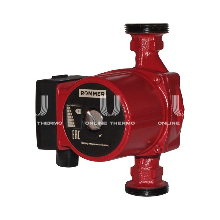 Циркуляционные насосы ROMMER предназначены для создания принудительной циркуляции теплоносителя в различных системах отопления, системах нагрева ГВС, системах отопления типа «теплый пол», циркуляционном контуре, в системах кондиционирования, а также в системах охлаждения промышленного оборудования и т.д. Резьбовые 3-х скоростные циркуляционные насосы исполнены как одинарные агрегаты с переменной частотой вращения, скорость вращения регулируется при помощи ручного переключателя, размещенного на клеммой коробке. Насосы имеют исполнение "с мокрым ротором" это значит, что детали насоса охлаждаются перекачиваемой жидкостью. Технические характеристики: рабочая среда: вода, водный раствор гликолей; диапазон рабочей температуры, °C: от -10 до +110; резьба, стандарт: UNI ISO 228/1.