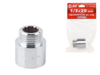 Удлинитель 1/2' вн.-нар. х 20 мм усиленный ХРОМ, AV Engineering (инд. упак.)(Латунь, макс. 16 бар, макс. 110 °С)
