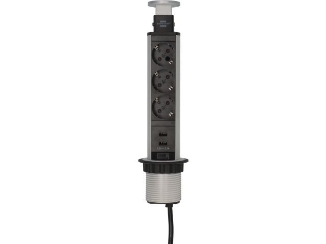 Удлинитель-башня 2м Tower-Power (3 роз, 2 USB, H05VV-F 3G1.5) Brennenstuhl(встраиваемый в столешницу, вертикальный выдвижной настольный удлинитель для постоянного монтажа)