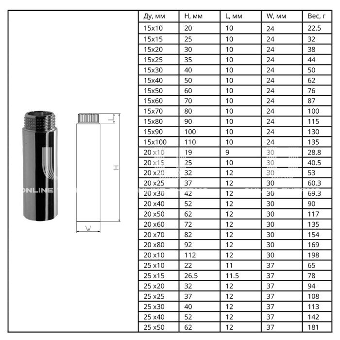 Удлинитель с внутренней и наружной резьбой SantechSystems ВР-НР 1", длина 50 мм, хром