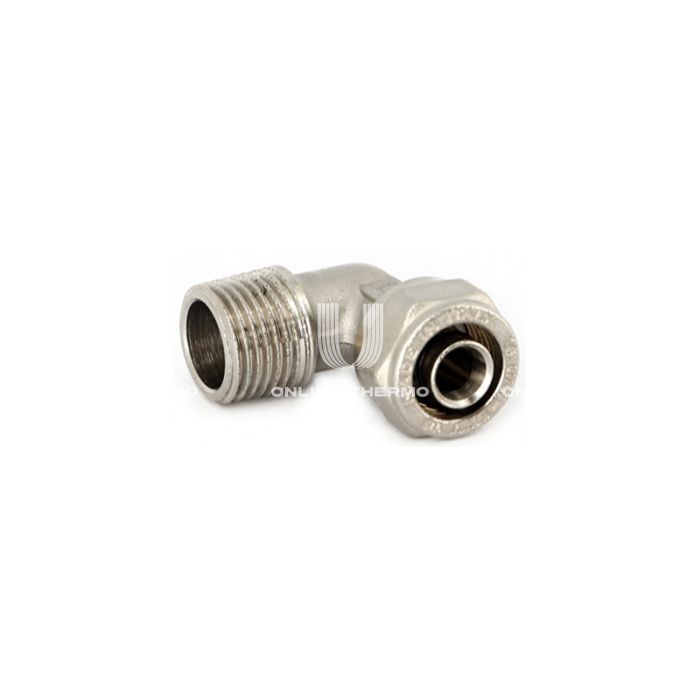 Угольник (угол) 90° с наружной резьбой Uni-Fitt 665N6300, 16х3/4", никелированный, компрессионный