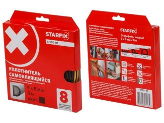 Уплотнитель 'D' черный 9х8мм 6м (сдвоенный профиль 2х3м) STARFIX