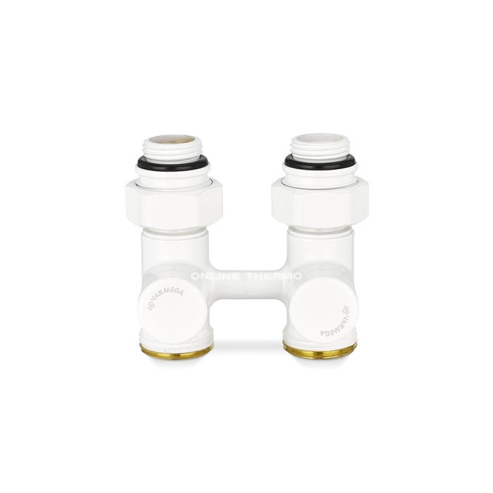 Узлы Varmega предназначены для нижнего подключения отопительных приборов в системах отопления к стальным, медным, полипропиленовым, пластиковым и металлополимерным трубам. Для радиаторов с межосевым расстоянием 50 мм используются стандартные двойные узлы, одинарные узлы используются для любых радиаторов с нефиксированным межосевым расстоянием. Клапаны имеют вентильную вставку, с помощью которой можно полностью отключить отопительный прибор от системы. Открытие и закрытие осуществляется с помощью ключа типа SW. Прямой радиаторный узел позволяет подключить радиатор к трубам, выходящим из пола, а угловой узел – к трубам, выходящим из стены. На патрубках радиаторов с резьбой 3/4" узлы крепятся при помощи накидных гаек, в случае применения радиаторов с присоединительными отверстиями, имеющими резьбу 1/2”, узлы устанавливаются через переходные адаптеры. Виды и модификации узлов: • Одинарный в угловом и прямом исполнении, предназначен для подключения радиаторов к двухтрубной системе. Для 1 радиатора требуется 2 одинарных узла. • Сдвоенный с межосевым расстоянием 50 мм в угловом и прямом исполнении, предназначен для подключения радиаторов к двухтрубной системе;