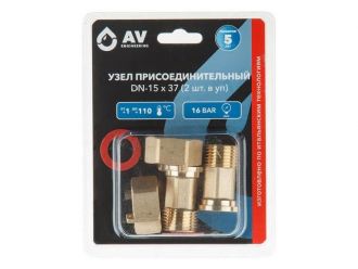 Узел присоединительный DN-15 х 37 (2 шт. в уп) AV Engineering(Латунь, макс. 10 бар, макс. 100 °С)