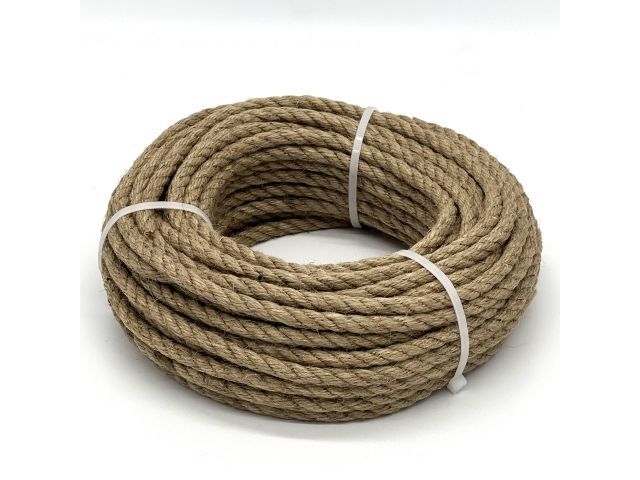 Веревка джутовая получена из кустарника джут, путём плетения и скручивания. Активно веревка используется в различных интерьерных решениях, как для отделки мебели, так и для создания декоративных поделок. Успешно применяется в строительстве, сельском хозяйстве и даже для изготовления домиков и когтеточек для домашних животных. Нашла применение в ландшафтном дизайне Линейная плотность = 15,5ктекс; Форма выпуска - моток; Технология изготовления - кручение; Число прядей - 3.