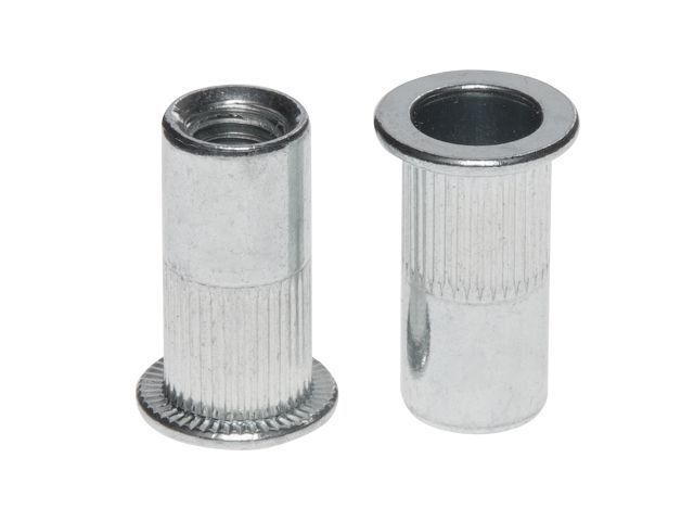 Внешний диаметр заклепки - 13мм Диаметр фланца - 18мм Длина заклепки - 21,0мм Толщина прикрепляемого материала - 1,0-3,5мм Стальная оцинкованная резьбовая заклепка с насечками ицилиндрическим бортиком применяется для соединения материалов, где необходимо создать резьбу для последующего монтажа прикрепляемой детали.